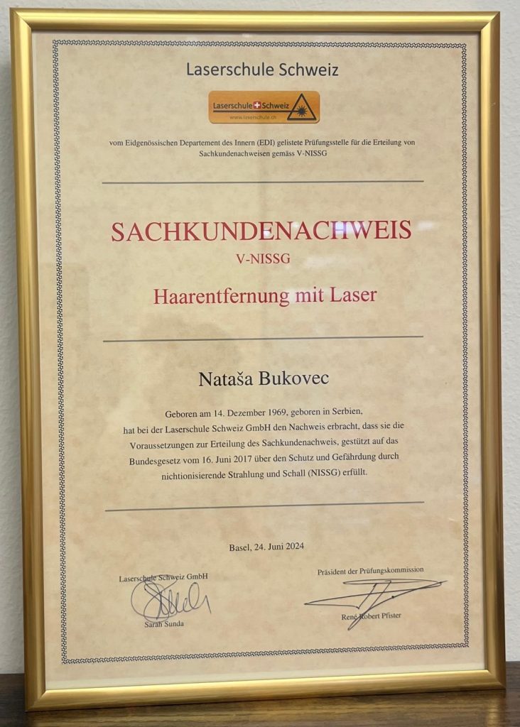 Damit gewährleiste ich Ihnen sichere, fachgerechte und gesetzeskonforme Laserbehandlungen nach den aktuellen Schweizer Standards.